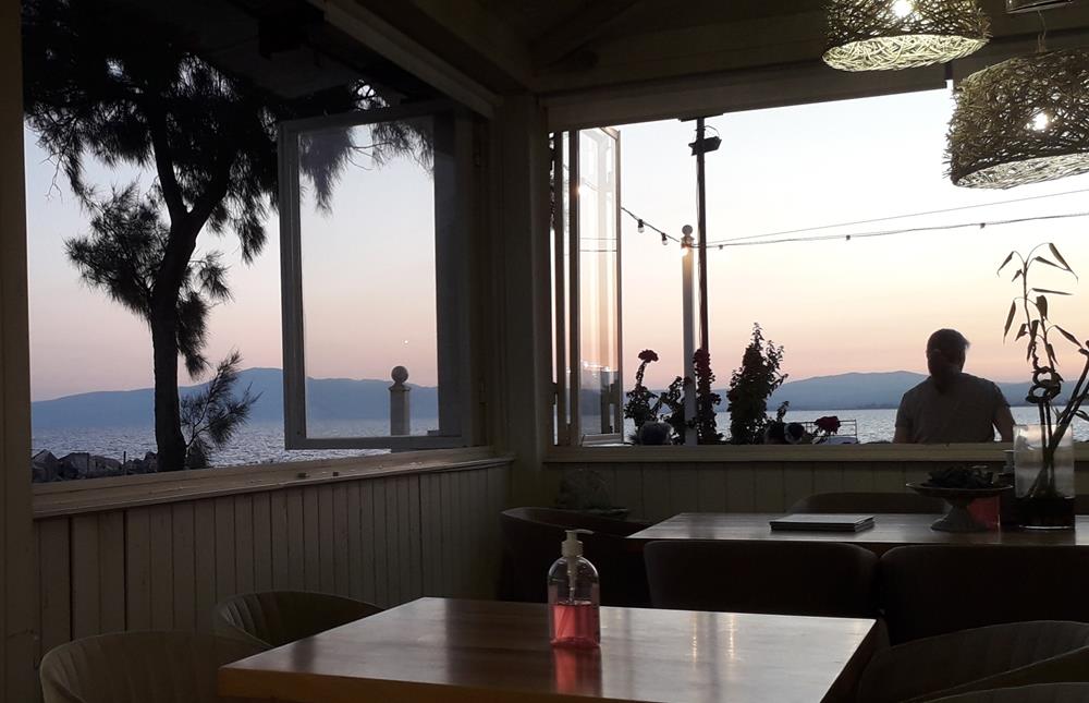 Dann soll es am nächsten Tag weiter gehen bis Eretria. Aber natürlich wieder mit Wind von vorn, nur mit Kreuzschlägen komme ich voran. Nachmittags dreht der Wind und ich laufe mein Ziel bequem an. Die Bucht ist nicht so groß wie gedacht und schon gut besucht. Kurz vor dem Strand finde ich noch ein Plätzchen. Ein kleiner Ort mit viel Tourismus, d.h. aber auch guten Restaurants entlang der Promenade. Hier gehe ich abends essen, mein Dinghi vor mir am Strand und guten Blick auf meine Yacht. Perfekt.