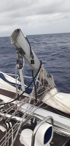 In der Nähe des Flughafens von Kefalonia gibt es eine kleine Marina, die auch eine Tankstelle haben soll. Dorthin motore ich am nächsten Tag bei spiegelglatter See. Es stellt sich aber heraus, dass es keine Tankstelle gibt, sondern nur die Möglichkeit einen Tankwagen zu bestellen. Das würde aber meinen Zeitplan durcheinanderbringen und ich muss unverrichteter Dinge die Marina wieder verlassen. Zunächst ist es immer noch windstill, obwohl gute Winde angekündigt waren. Ich lade noch einmal die neuesten Wetterdaten herunter und setze Segel. Jetzt geht es westwärts. Nach kurzer Zeit setzt der Wind dann kräftig ein und ich komme mit 6 Kn super voran. Nachts flaut der Wind zwar ab, aber ich komme immerhin unter Segel noch mit etwas über 2 Kn weiter. Die im Morgengrauen einsetzende Flaute in der Mitte zwischen Griechenland und Sizilien war vorhergesagt. Bereits nach vier Stunden unter Motor setzte ein leichter Wind wieder ein, nun leider aus südlicher Richtung. Hoch am Wind schaffe ich noch bis zu 4Kn. Da nun auch die Welle aus SW kommt, wird es eine schaukelige Fahrt durch die Nacht und den nächsten Tag. Leider kann ich den Kurs auf Porto Palo nicht halten und komme immer weiter nördlich an die sizilianische Küste. Irgendwann konnte ich aber dann doch noch Richtung Syrakus steuern. Hier musste ich für kurze Zeit dann unter Motor nach Süden fahren. Bald kam der Wind wieder aus der richtigen Richtung und Porto Palo war unter Segel anzusteuern. Groß und Genua hatte ich gerefft, da der Wind dauerhaft über 12 Kn wehte und ich mit starker Kränkung fuhr. Der Wind nahm weiter zu und ich wollte früh am Morgen die Genua noch weiter reffen. Kaum hatte ich die Schot gelöst, frischte der Wind über 20 Kn auf und ich bekam die Genua so nicht weiter eingerollt. Sie knatterte die ganze Zeit im Wind, auch wieder dicht holen war erst einmal nicht möglich. Ich versuchte unter Motor aus dem Wind zu kommen um ihn mehr achterlich aufs Schiff treffen zu lassen. Aber die Wellen waren zwischenzeitlich schon auf 2m angewachsen und der Motor schaffte die Kursänderung über die Welle nicht. So trieb ich immer wieder in den Wind bis plötzlich die Genua auch noch back stand. Nun war ich völlig manövrierunfähig. Und dann krachte es plötzlich und der Mast brach in der Mitte und schlug nach Steuerbord ins Wasser. Das untere Teil hing über der Reling noch etwas über Deck.