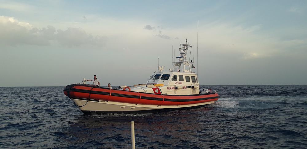 Dann sah ich aber im Morgengrauen schon die Coast Gard angefahren kommen, die mich dank meines Satelliten Signals gefunden hatten. Durch den noch hohen Wellengang war es ihnen nicht so einfach möglich, bei mir längsseits zu kommen. Aber bald hatten sie es geschafft. Über Funk hatten sie mich bereits gebeten, zunächst zu ihnen an Bord zu kommen, um die Situation zu klären und gleichzeitig sollten zwei Crewmitglieder bei mir an Bord gehen. Ein Bergen des Mastes und der Segel wurde als unmöglich angesehen und so wurden alle Wanten, Stage und Seile gekappt um alles im Meer versinken zu lassen. Dann durfte ich wieder an Bord, nachdem ich versichert hatte, dass ich die Fahrt unter Motor fortsetzen konnte. Sie forderten mich auf, direkt nach Syrakus zu fahren. Um acht Uhr starteten wir. Den ganzen Weg begleiteten sie mich. Nachmittags liefen wir dann in die große Bucht ein und ich wurde zum Steg der Werft gebracht, wo ich erst einmal festmachte.