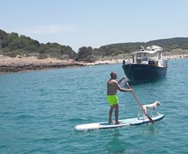 Nele lebt sich langsam an Bord ein und gewöhnt sich an das Schaukeln. Nach dem Frühstück am nächsten Tag holen wir den Anker auf und setzen Segel. Der Wind ist etwas wechselhaft und wir müssen häufig den Kurs ändern. Nach einem wunderschönen Segeltag machen in der Bucht von Tarida fest. Das Wasser ist ruhig, wir paddeln an Land und gehen in einer der Strandbars Essen. Im Supermarkt wird noch etwas eingekauft und dann genießen wir an Bord den herrlichen Sonnenuntergang.