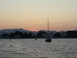 Alcudia bietet vor der Marina ein sehr großes Ankerfeld mit angenehmen Tiefen zwischen 3 und 5m. Das Wasser ist klar und lädt zum Baden ein. Hier will ich ein paar Tage bleiben. Der nächste Tag beginnt zwar mit Regen und Gewitter in der Ferne. Ab nachmittags scheint wieder die Sonne. Ich treffe hier Uwe und Alexandra, die gerade aus der Karibik zurück sind. Sie besuchen mich an Bord und erzählen viel von ihrem 4-jährigem Törn. Für Alexandra beginnt nun wieder das Arbeitsleben.