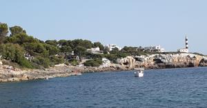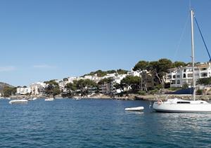Scheint immer noch eine Hochburg der Deutschen zu sein. Kein Restaurant und Laden ohne deutsche Speisekarte bzw. beschriftete Auslagen / Werbung. Ich bleibe nur eine Nacht, dann geht es weiter unter Segel nach Porto Colom, wo auch ein Freund aus Licata im Sommer sein Boot liegen hat. Das Ankern vor dem Strand ist schwierig, da hier überall Posidonia Gras am Grund ist und den darf weder Anker noch die Kette berühren. Das wird hier auch streng überwacht. Auch ich musste mich um ein paar Meter verlegen.