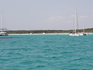 Am nächsten Tag treffe ich die beiden und werde zum Abendessen an Bord eingeladen. Schön wieder mit Freunden zusammen zu sitzen. Nur mit der Genua geht es am nächsten Tag zum längsten Strand im Süden Mallorcas nach Playa d’es Trenc bei Colonia Sant Jordi. Hier liegt die Infinity, die gerade vor ein paar Wochen von ihrem Karibiktörn zurückgekehrt sind. Wir haben uns vor 2 Jahren in Licata kennengelernt. Soll gleich auf ein Bier rüberkommen. Natürlich erzählen sie viel von ihren Erfahrungen. So ganz wohl haben sie sich dort aber nicht gefühlt und sind bereits nach einer Saison wieder zurück. So unterschiedlich können doch die Eindrücke sein. Vor ein paar Tagen hatte ich nur positives von Uwe gehört. Die beiden fahren mit mir in die Stadt und zeigen mir, wo ich was finden kann. Abends bin ich dann zum Essen an Bord eingeladen.