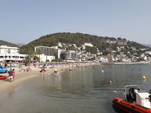 Jan und Moana aus Porto Colom sind heute hier vor Anker gegangen und auch mit dabei. An Bier und Wein und guten Geschichten mangelte es nicht. Glücklicherweise nur kurzer Weg mit dem Dinghy zurück zu meinem Boot. Hier kann man wirklich lange liegen bleiben. So herrliches Wasser und relativ windgeschützt. Nur der Weg in die Stadt mit dem Dinghy ist sehr weit. Aber eine Tankfüllung reicht für den Hin- und Rückweg. Als Gegeneinladung laden wir Jost und Angela ins Grill-Restaurant ein. Nun ist es schon Juli geworden und das Ankerfeld wird merklich voller. Nach ein paar Tagen ist es für mich Zeit weiter zu segeln. Ziel ist Santa Ponsa. Auch hierhin Hälfte gesegelt und Hälfte motort. Schöne Ankerbucht, sehr voll, aber ich finde noch einen Platz.