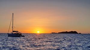 In der Marina gibt es abends kein Essen mehr. Aber in der Stadt einen gemütlichen Italiener gefunden und leckere Pizza gegessen. Am nächsten Morgen noch getankt und dann mit beständigem guten Wind in einem Rutsch nach Ibiza. So eine schöne Fahrt hatte ich schon lange nicht mehr. Die Bucht Portinatx war schon zu voll, in der danebenliegenden Bucht Xarraca kurz vor Sonnenangang noch Platz gefunden. Möchte mich morgen aber umlegen. Liege zu dicht bei anderen Yachten. Aber für diese Nacht ist es ok.