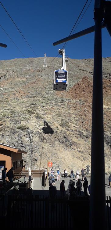 Am 16.02. ist der Ausflug mit dem Reisebus zum Pico del Teide. Um acht Uhr an der Bushaltestelle nur 5 Min. von der Marina entfernt. Es werden noch einige Gäste in Candelaria aufgenommen und dann geht es dieselbe Straße durch den Nationalpark, die ich auch mit dem Mietwagen gefahren bin. Nun kann ich aber noch besser die Landschaft rundherum genießen. Kurz vor dem Ziel gibt es noch eine halbe Stunde Rast in einem Restaurant / Café. Dann direkt zur Seilbahn.