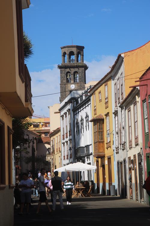 Weiter bis zum Pico del Ingles mit schönen Aussichtspunkten auf beide Seiten der Insel. Den Aussichtspunkt Cruz del Carmen kann ich leider nicht anfahren. Alles mit Bussen und PKW zugparkt. In San Cristobal de la Laguna wollte ich Halt machen. Aber selbst hier in der größeren Stadt finde ich im Innenstadtbereich keine Parkplätze. Ich werde später mit dem Bus hierherfahren. Über die Schnellstraße komme ich nach La Orotava. Im Parkhaus finde ich Platz und mache einen Stadtbummel. Orotava liegt höher als Puerto de la Cruz. Man hat von hier gute Ausblicke ins gleichnamige Tal. Bekannt wurde die Stadt durch den Botaniker Alexander von Humboldt. Ein Aussichtspunkt kurz vor der Stadt trägt seinen Namen.