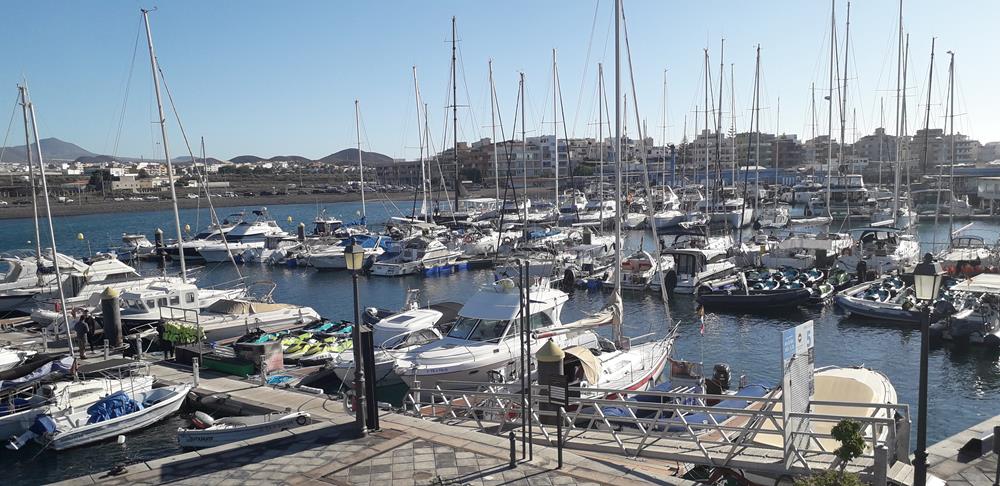 Ich fahre dicht an Grindwalen vorbei, die gemächlich sich durchs Wasser treiben lassen. Ich lasse mich Augenblick treiben mit Standgas, bis sie vorbeigezogen sind. In der Mitte zwischen Teneriffa und La Gomera erlebe ich das erste Mal so richtig, was die Düsenwirkung auf den Kanaren bedeutet. Der Wind dreht und steigt in wenigen Minuten auf 20 Kn an. Auch eine unangenehme kippelige Welle direkt von vorn baut sich sofort auf. Das Meer ist weiß. War ich eben noch mit 4,5 kn unterwegs, geht es nun nur noch mit 1,5 – 2 Kn voran und immer kommt viel Wasser übers Deck. Es ist schwer Kurs zu halten. Gegen sechs erreiche ich Landabdeckung und wieder schlagartig ist es ruhig. Die letzten Meilen komme ich wieder gut voran. Der Marinero erwartet mich schon am Eingang der Marina und führt mich zu meinem Liegeplatz. Toller Service.