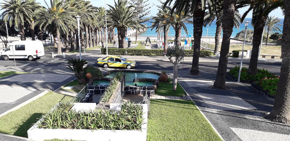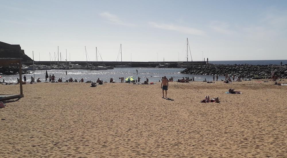 Noch einen Abstecher in den Parque Florestal und zurück bis Paso de Poiso, wo ich in dem Restaurant mit der schönen Außenterrasse etwas esse. Von hier geht es wieder nur abwärts bis Santo Antonio bis Aqua de Pena am Meer. Schnell bin ich dann gegen sechs in der Marina zurück. Die Insel ist nicht wirklich groß und die Straßen sind gut ausgebaut. Die vielen Tunnel haben mich beeindruckt. Den Wagen habe ich nur für 5 Tage gemietet und so muss ich den Wagen schon am nächsten Tag wieder abgeben. Das ging diesmal völlig reibungslos. Bis Mittag bleibe ich noch in Machico und bummele zum Strand und Hafen. Hier ist der Strand mit importierten Sand geschaffen worden.