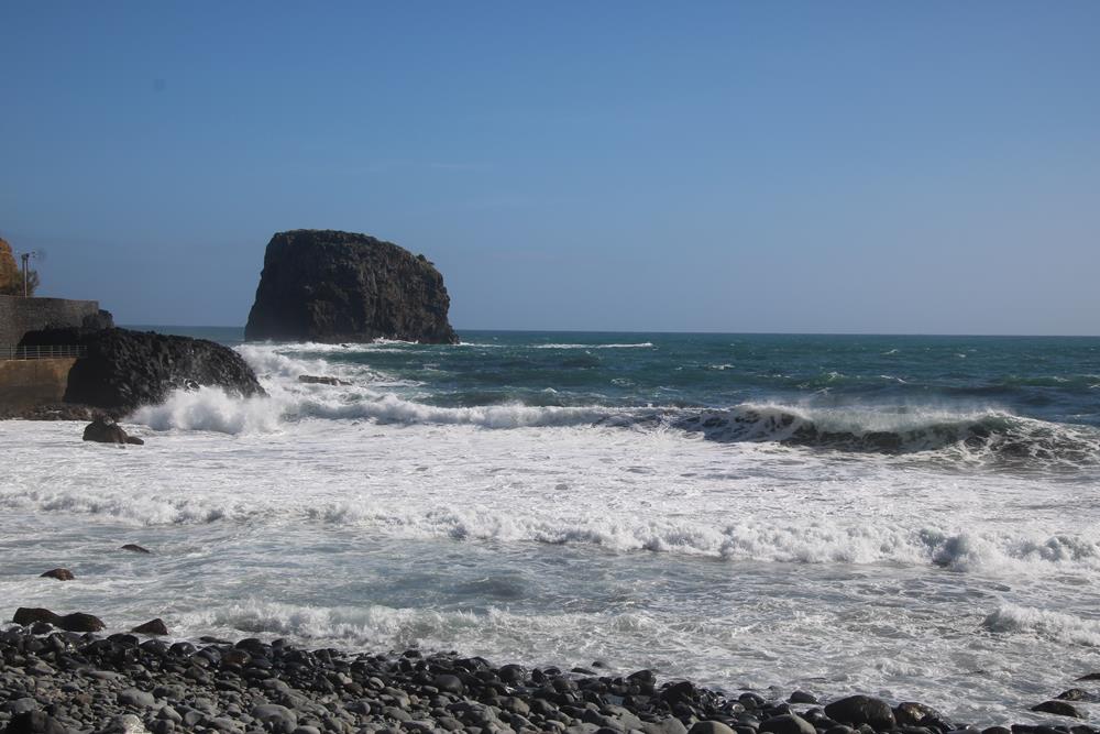 Ich buche mir einen Leihwagen ab dem Flughafen und fahre am nächsten Tag mit dem Bus hin. Die Übergabe ist etwas schwierig. Nach längerer Suche und Rückfragen finde ich das Taxi, dass uns zur Mietwagenstation in der nahegelegenen Stadt Machico fährt, wo ich dann meinen Wagen endlich übernehmen kann. Der Supermarkt ist nicht weit weg (direkt beim Busbahnhof) und ich kaufe für die nächsten Tage ein, in der Marina gibt es nichts. Michi ruft mich an und möchte gern die Rückfahrt nach Lagos mit mir zusammen machen. Er will am 20.04 nach Madeira kommen. Habe nun also fast zwei Wochen Zeit mir die Insel anzuschauen. Am nächsten Morgen starte ich nach dem Frühstück in Richtung Porto da Cruz. Es geht über eine Schnellstraße durch lange Tunnel und schon bald bin ich im Ort. Das Wetter ist herrlich. Porto da Cruz ist ein schöner kleiner Ort mit zwei Stränden. Hier bricht sich die Brandung beeindruckend bis kurz vor dem Strand.