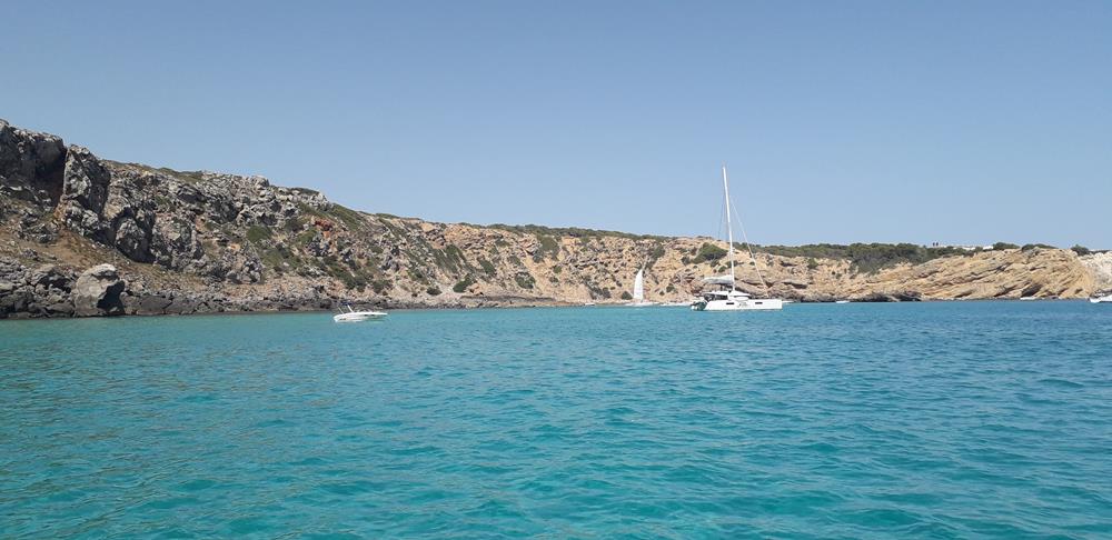 Nun steht aber endlich die Fahrt nach Formentera an. Das Wetter ist gut und unter Segel komme ich fast bis zum Ankerplatz in die Bucht von Migjon. Die Buchten an der Westküste waren alle überfüllt. Es ist nun Hauptsaison. Aber hier ist ausreichend Platz und ich ankere über glasklarem Wasser.