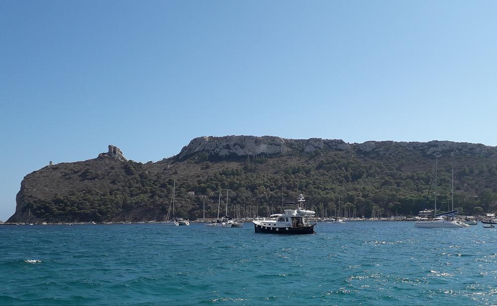 Die nächsten drei Tage bleibe ich hier. Mit dem Bus noch einmal nach Carlaforte zum Einkaufen. In der letzten Nacht bekomme ich Besuch von der Seenotrettung und fragen ob alles in Ordnung wäre. Ich bin das einzige Boot am Ankerplatz und es ist viel Schwell. Aber Anker hält gut. Wer weiß, wer die angerufen hat.
