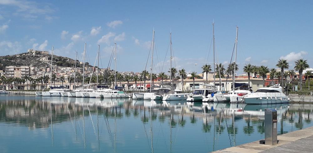 Doch auch hier sind starke Südwinde angesagt und ich verlege mich für zwei Nächst in die Marina. Andre bleibt vor Anker. Aber es ist wirklich sehr viel Schwell. Mit Andre in der Marina getroffen und Essen und Trinken gegangen. Bevor ich wieder auf meinen Ankerplatz zurückkehre, tanke ich noch voll in der Marina. Es soll nun ein starker Sturm über Sardinien von NW ziehen. Wir buchen einen Liegeplatz an der Ostküste in Corallo. Der Wind am nächsten Tag kommt leider direkt aus N und ich versuche zu kreuzen, aber mache keine Höhe. Unter Motor bis zur Marina. Hier drinnen liegen wir gut geschützt. Zwei Tage wettern wir hier den Sturm ab. Dann ergibt sich für mich ein Wetterfenster mit eventuell noch starken Winden aber aus westlicher Richtung, sodass ich vielleicht nur mit Genua nach Sizilien komme. Ich reserviere vorsorglich einen Platz in Mazara del Vallo. Am 11.09. startete ich meinen Rückweg nach Sizilien. Zunächst lief es ganz gut, dann wurde der Wind aber schwächer und ich musste motoren bis ich Villasimius querab liegen hatte. Hier setzte nun der Westwind ein und ich kam mit 4-5 Kn gut voran. Leider wurde die Welle aber immer höher gegen Abend und ich fiel immer wieder in ein Wellental und wurde aufgestoppt und versetzt. Die Windfahne konnte den Kurs nicht mehr halten. Ganze Nacht nur mit der Hand gesteuert. Morgens sah ich dann die Wellen auch wieder, sie waren bis zu 2m hoch. Erst als ich die Insel Maritimo erreichte, beruhigte sich die See. An den Egadischen Inseln vorbei Richtung Marsala. Zu spät merkte ich, dass ich einen falschen Wegepunkt eingegeben hatte und gar nicht Mazara del Vallo ansteuerte. Ich hatte mich schon auf eine frühzeitige Ankunft gefreut, musste aber nun noch 26 M weiter östlich segeln. Die legte ich dann aber unter Motor zurück, kam aber doch erst gegen zehn Uhr im Dunkeln an. Der Hafen ist sehr flach, auf Funk kam keine Antwort. Als ich am Steg ankam sah ich jemanden mit einer Lampe winken. Mein Echolot gab dauernd Alarm. Ich hielt auf die Lücke zu, verfing mich dann aber noch in einer weit in meinen Platz reinreichenden Mooring. Konnte rückwärts wieder raus, aber verfing mich wieder in anderen langen Mooringleinen im flachen Wasser. Der Hafenmeister schleppte mich mit seinem Motorboot aus meiner Falle und brachte mich zum Steg. Was für eine Aufregung zu so später Stunde. Erschöpft falle ich in meine Koje. Leider konnte ich nicht am nächsten Tag aus dieser nicht wirklich schönen Marina weitersegeln.